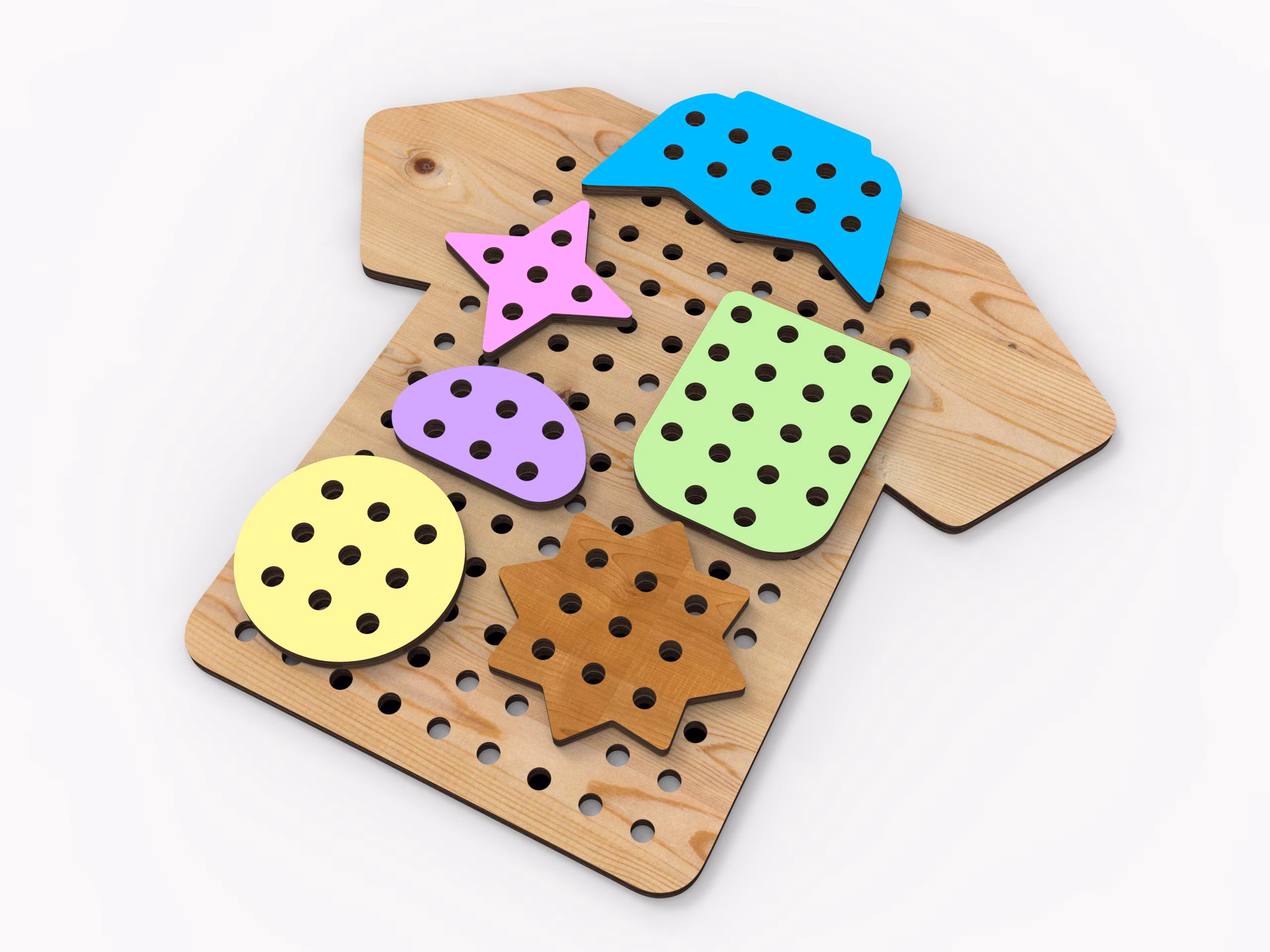 The plywood lacing toy is the perfect accessory for developing fine motor skills and coordination in kids! You make it from high-quality material using laser cutting, which ensures precision and safety. After all, it is for your beloved baby.