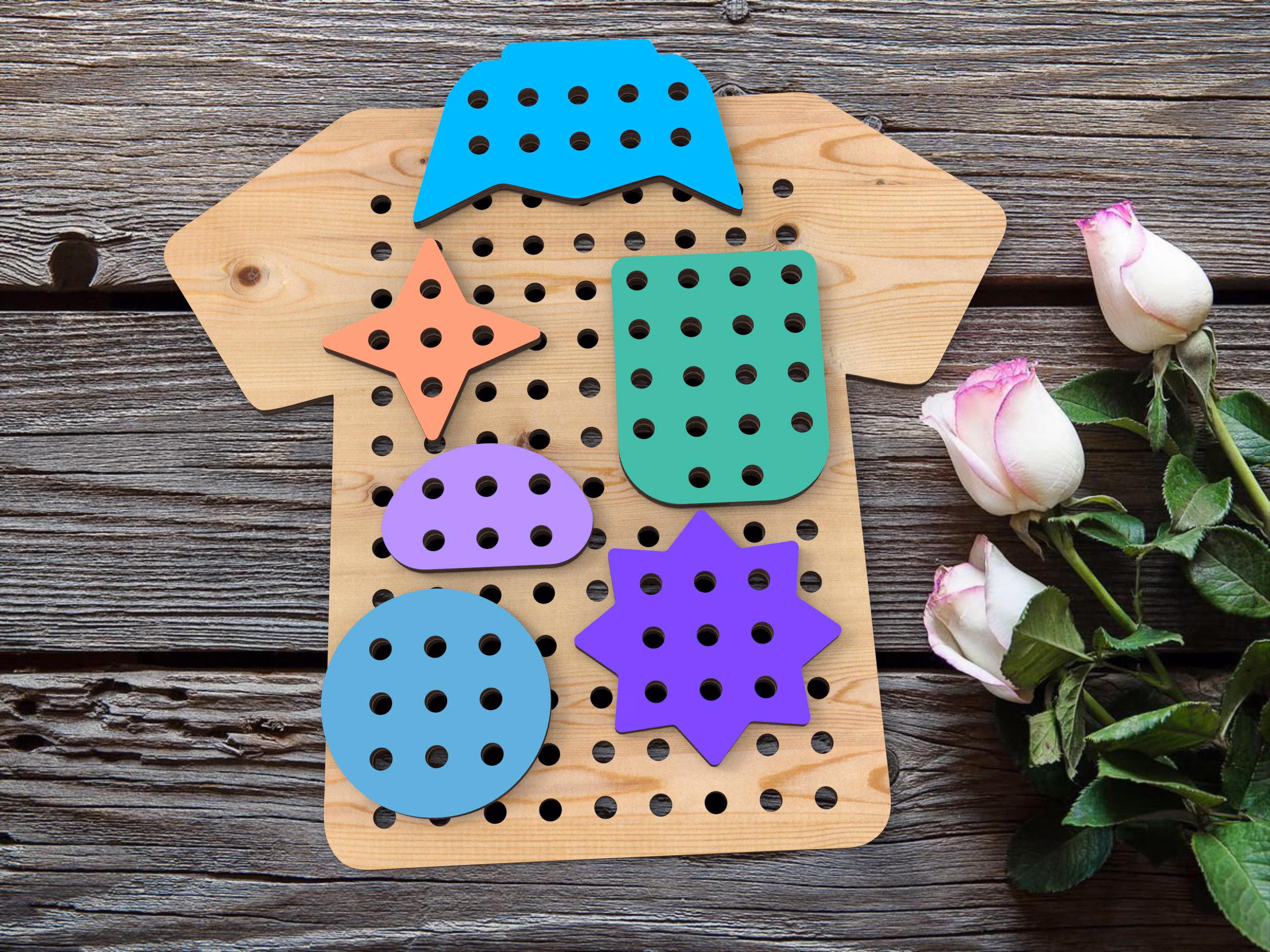 The plywood lacing toy is the perfect accessory for developing fine motor skills and coordination in kids! You make it from high-quality material using laser cutting, which ensures precision and safety. After all, it is for your beloved baby. The set includes a wooden base with holes for laces, which kids can thread, improving manual dexterity, attention and concentration.