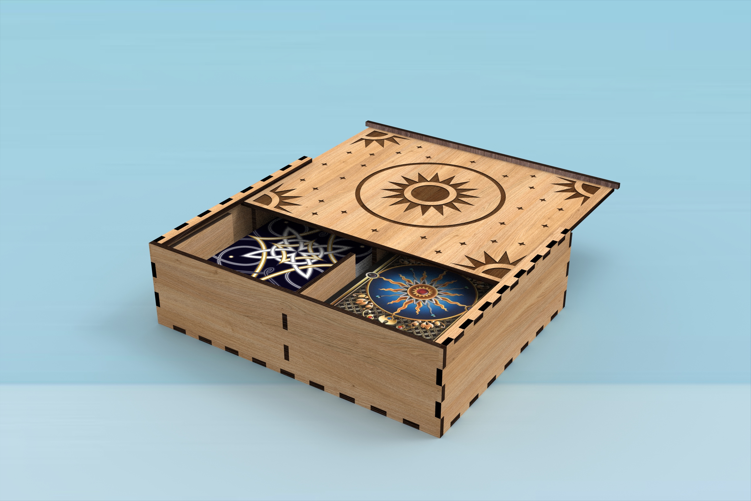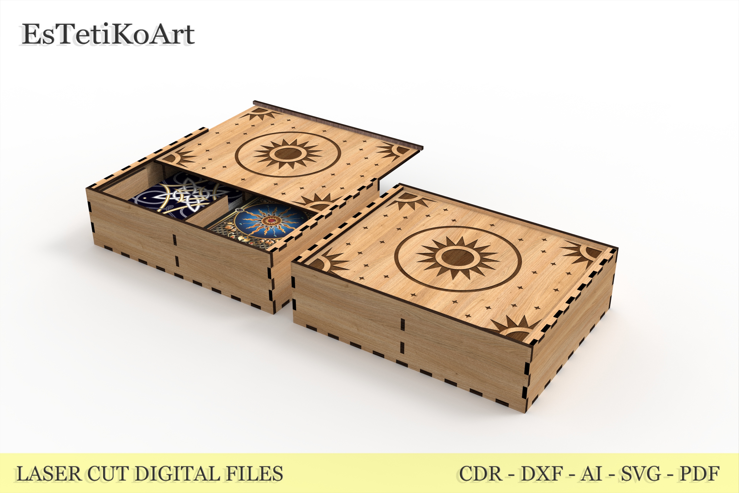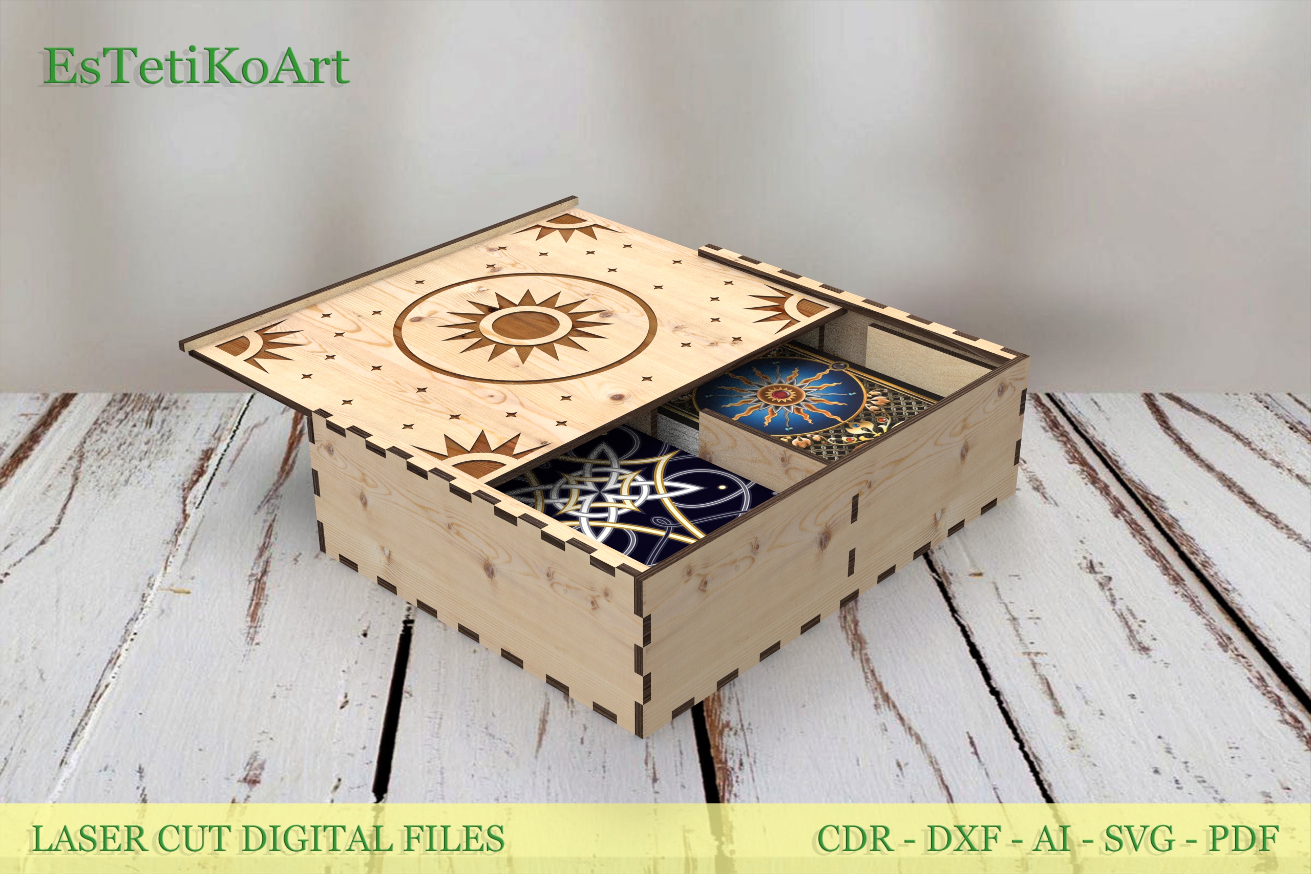 Tarot Card Wooden Box Laser Cut Files – digital download SVG, DXF files for creating a beautiful tarot box for two standard card decks.