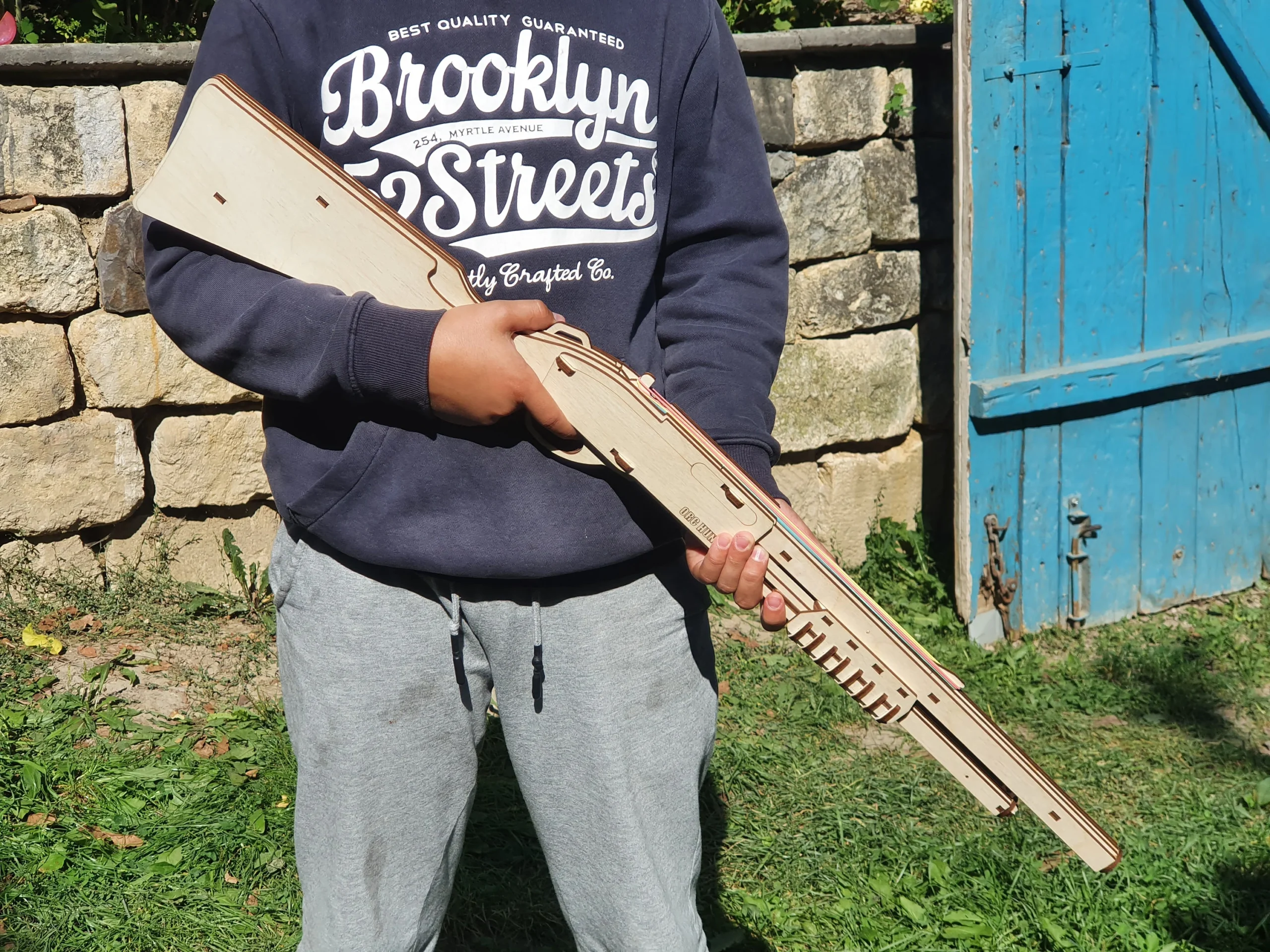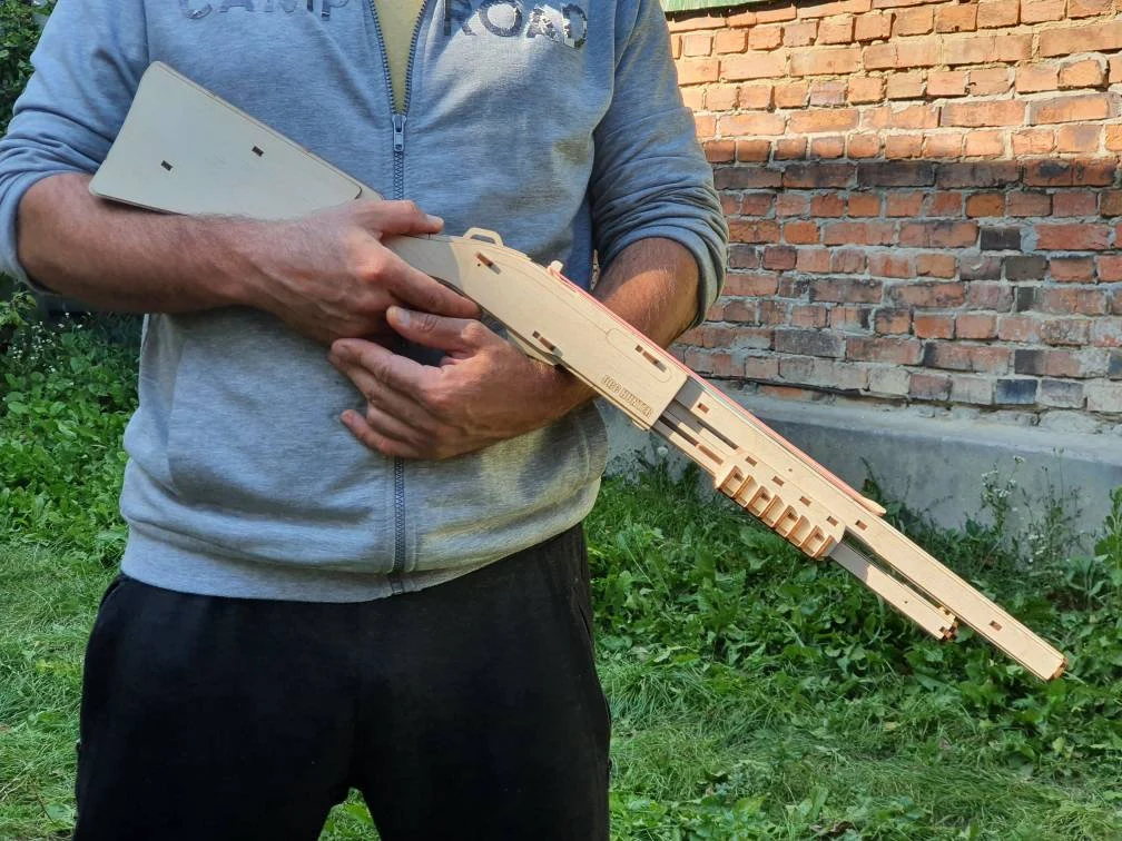 This digital download includes laser cut files for cut a wooden toy rubber band shotgun – perfect for family projects, gifts, and playful fun.
