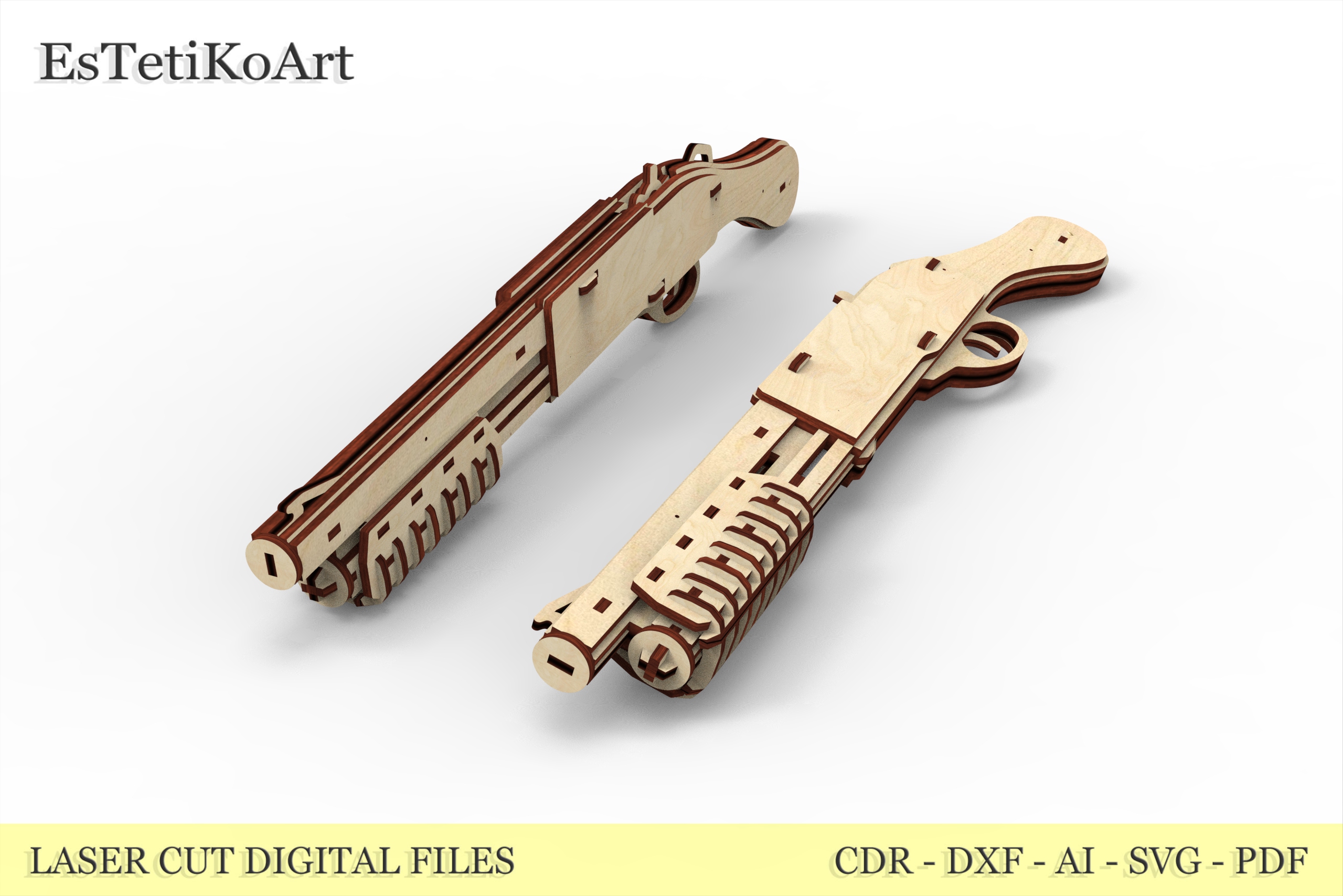 This is DIGITAL FILES for laser cut of wooden shotgun T4P8877.